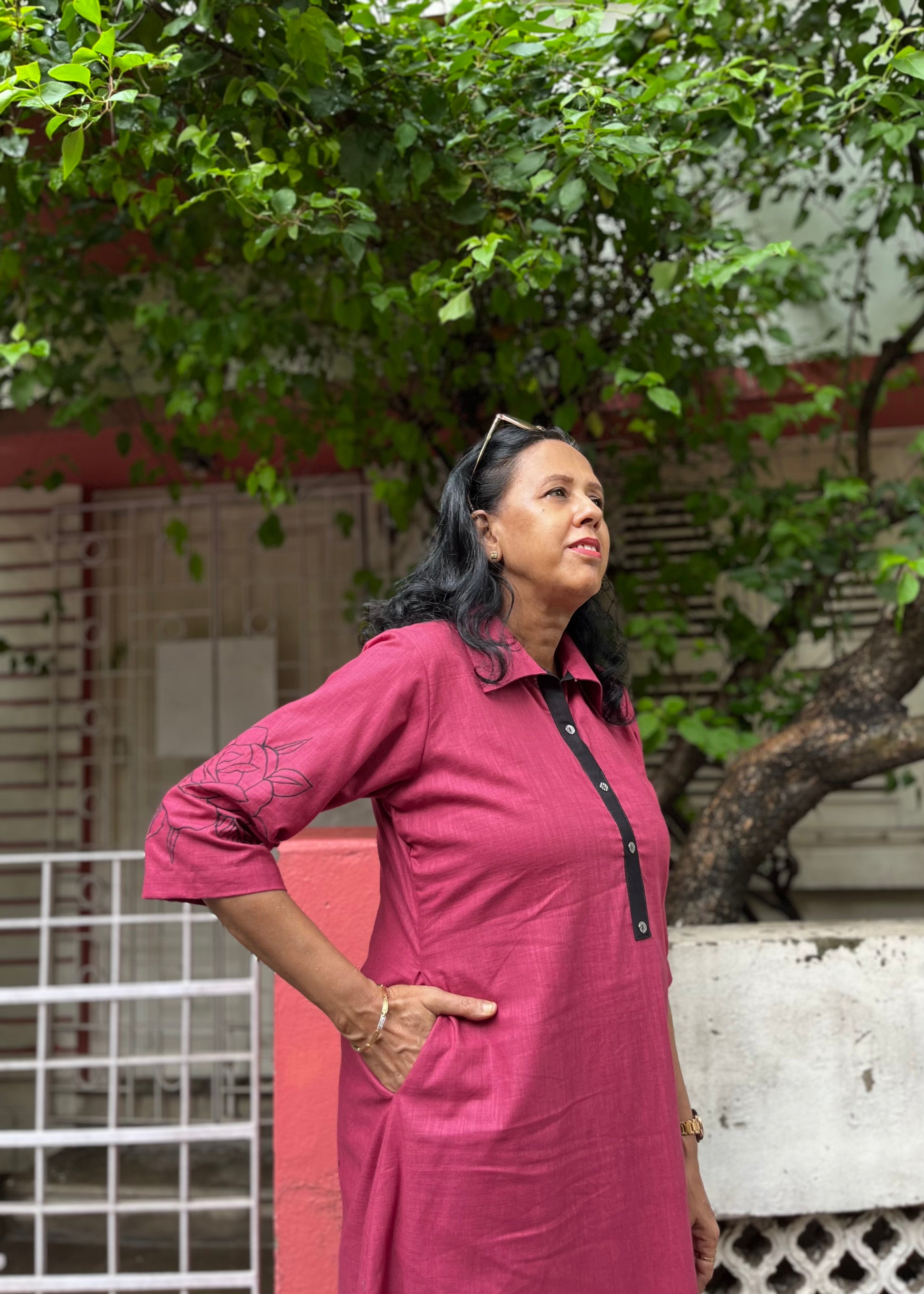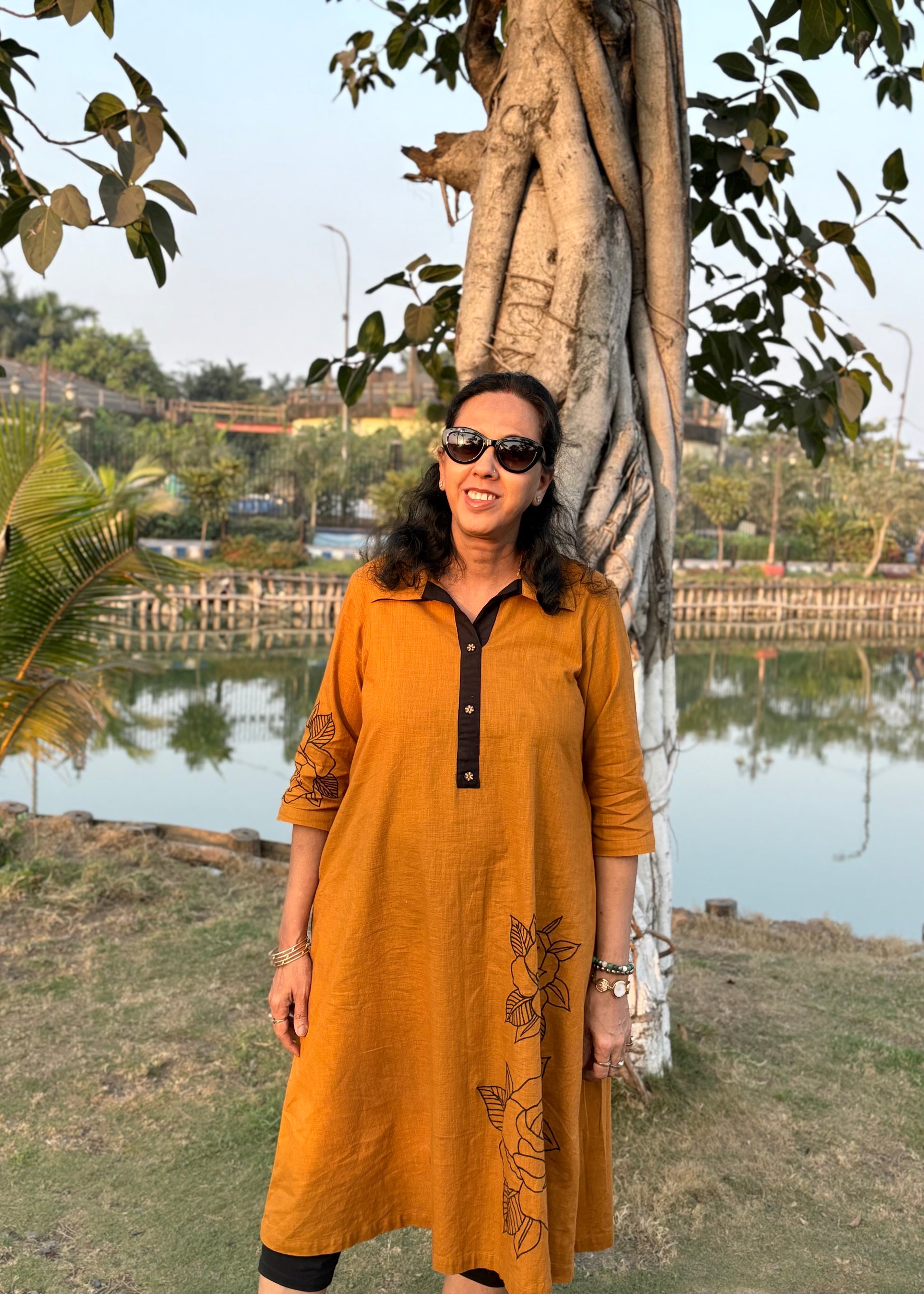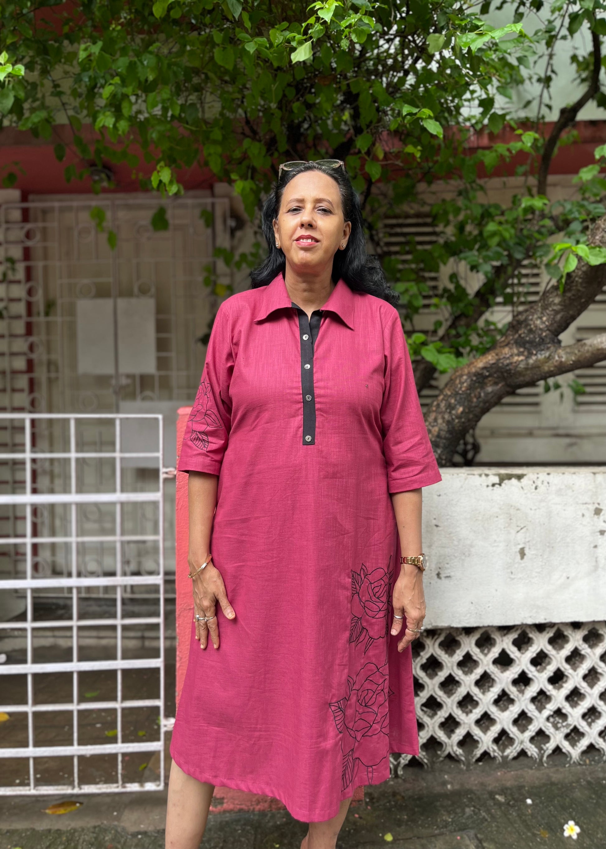 • Crafted in an A-line cut with contrast black thread cutwork embroidery