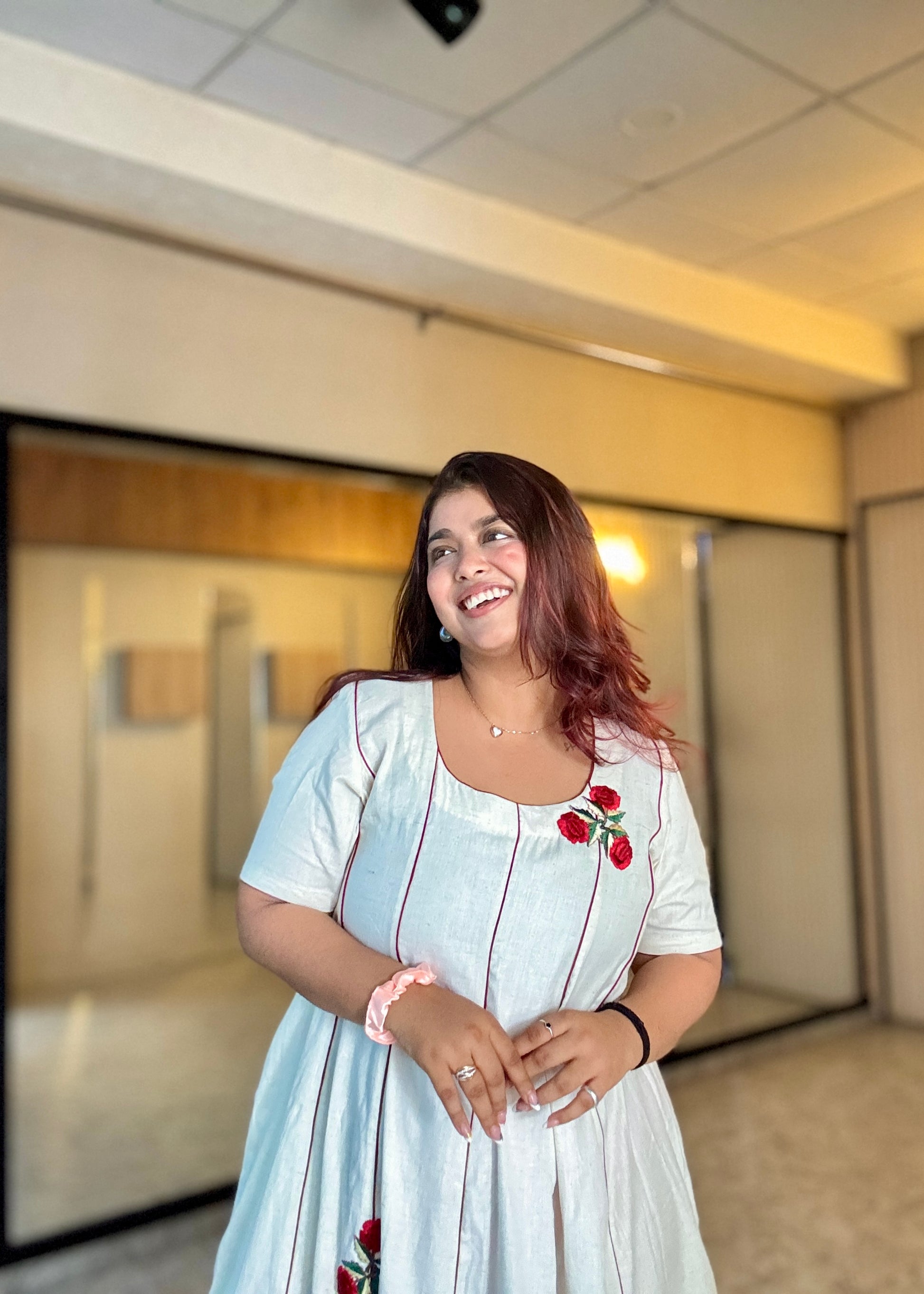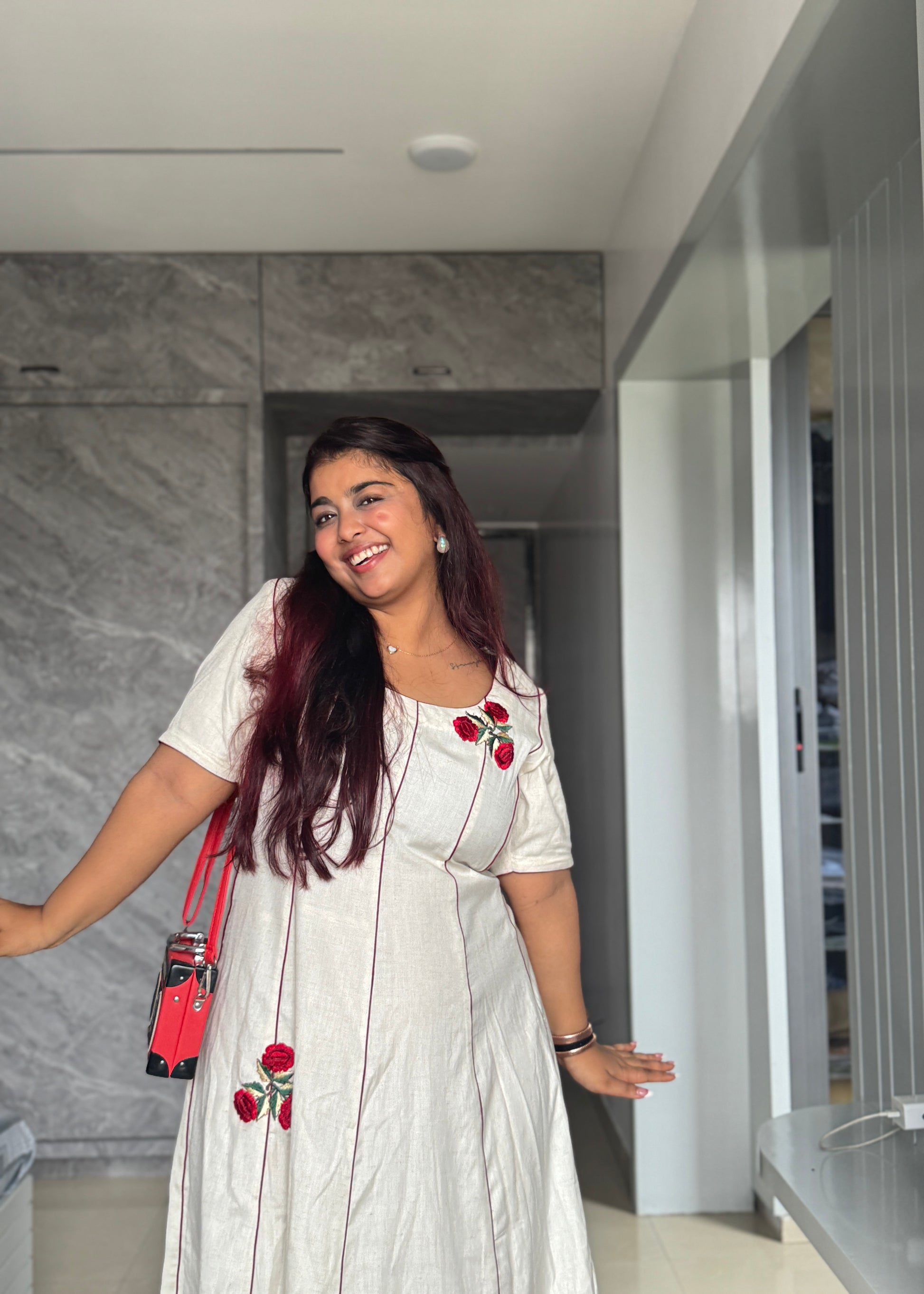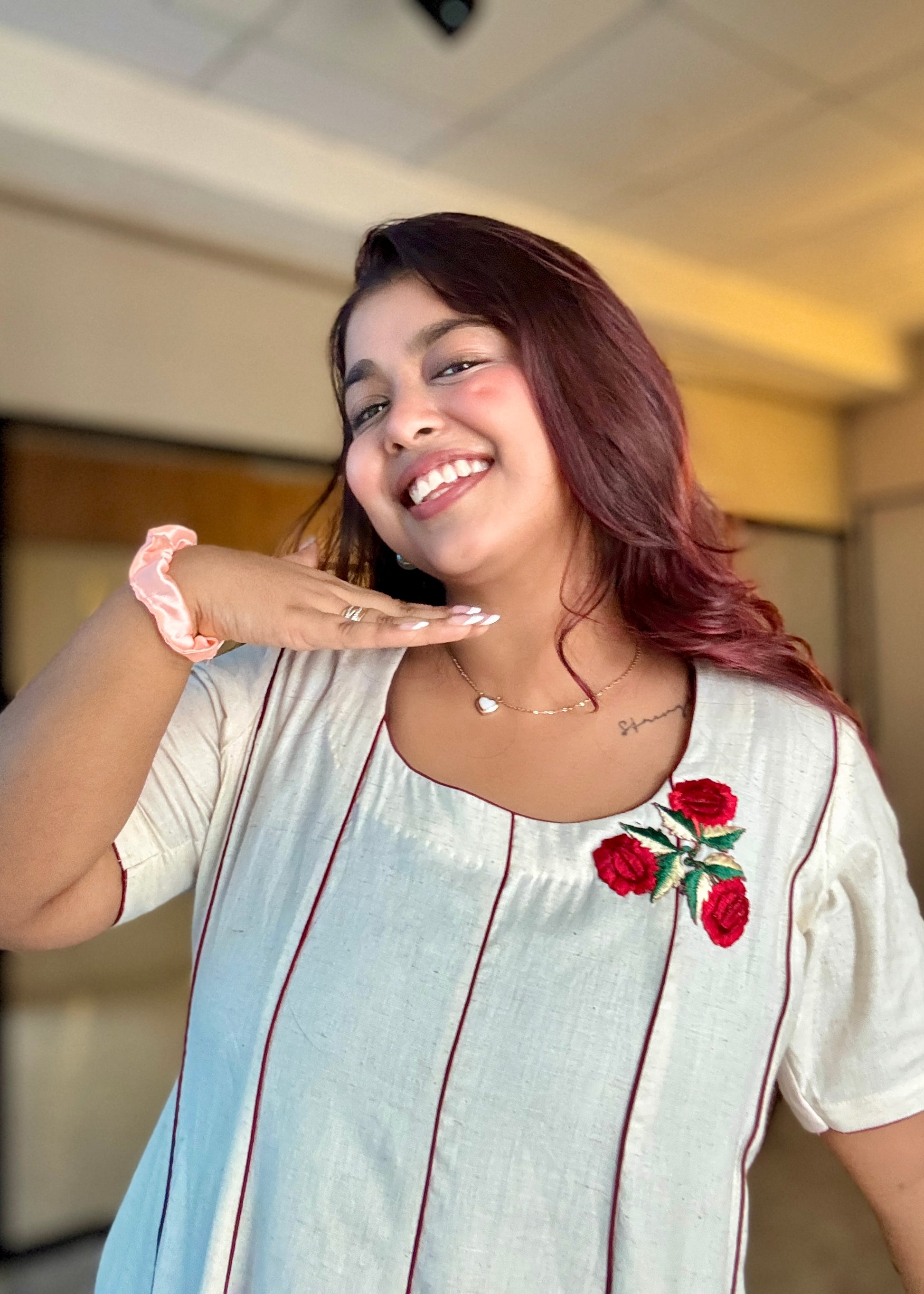 • Features delicate rose flower embroidery placed thoughtfully across the front