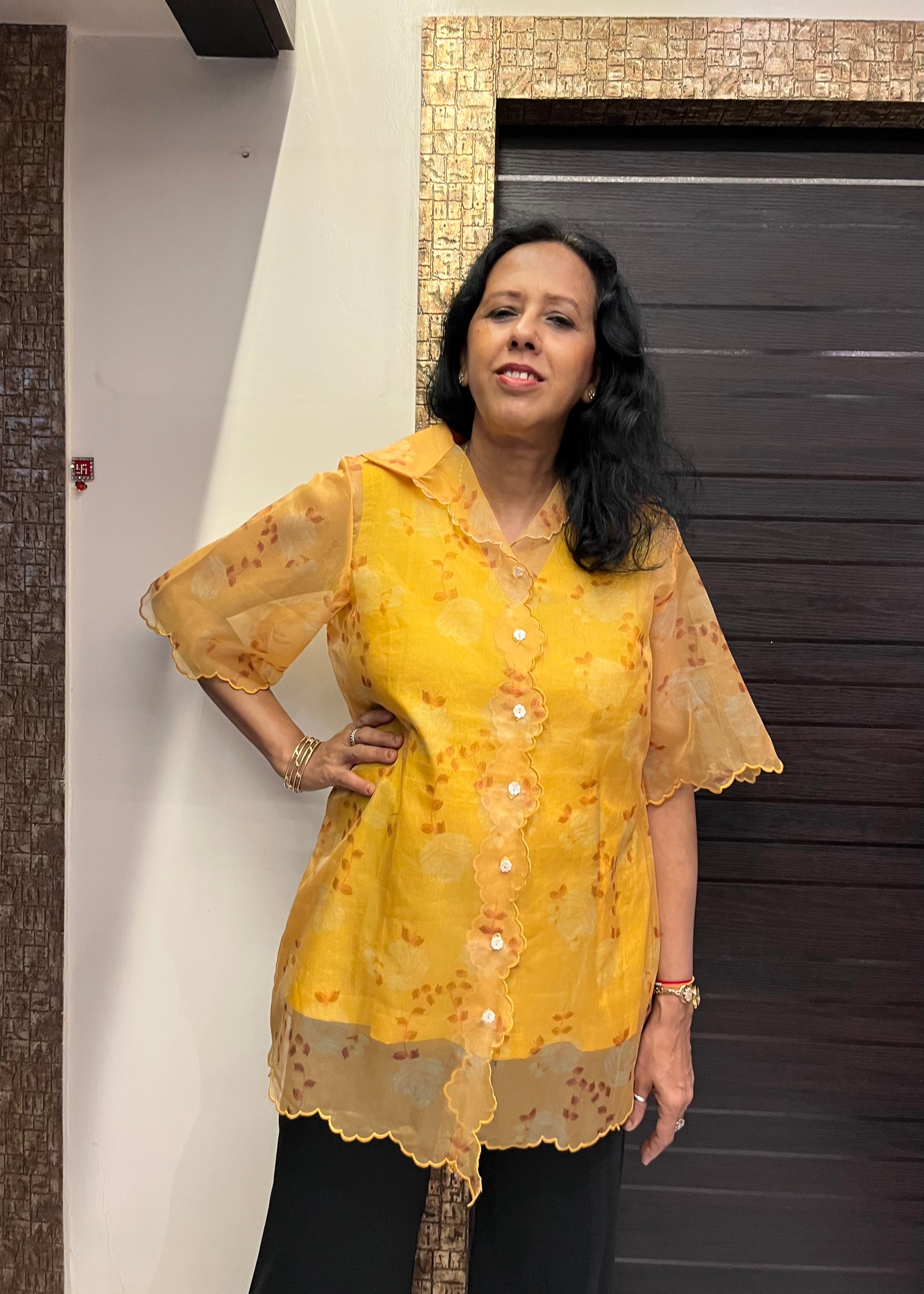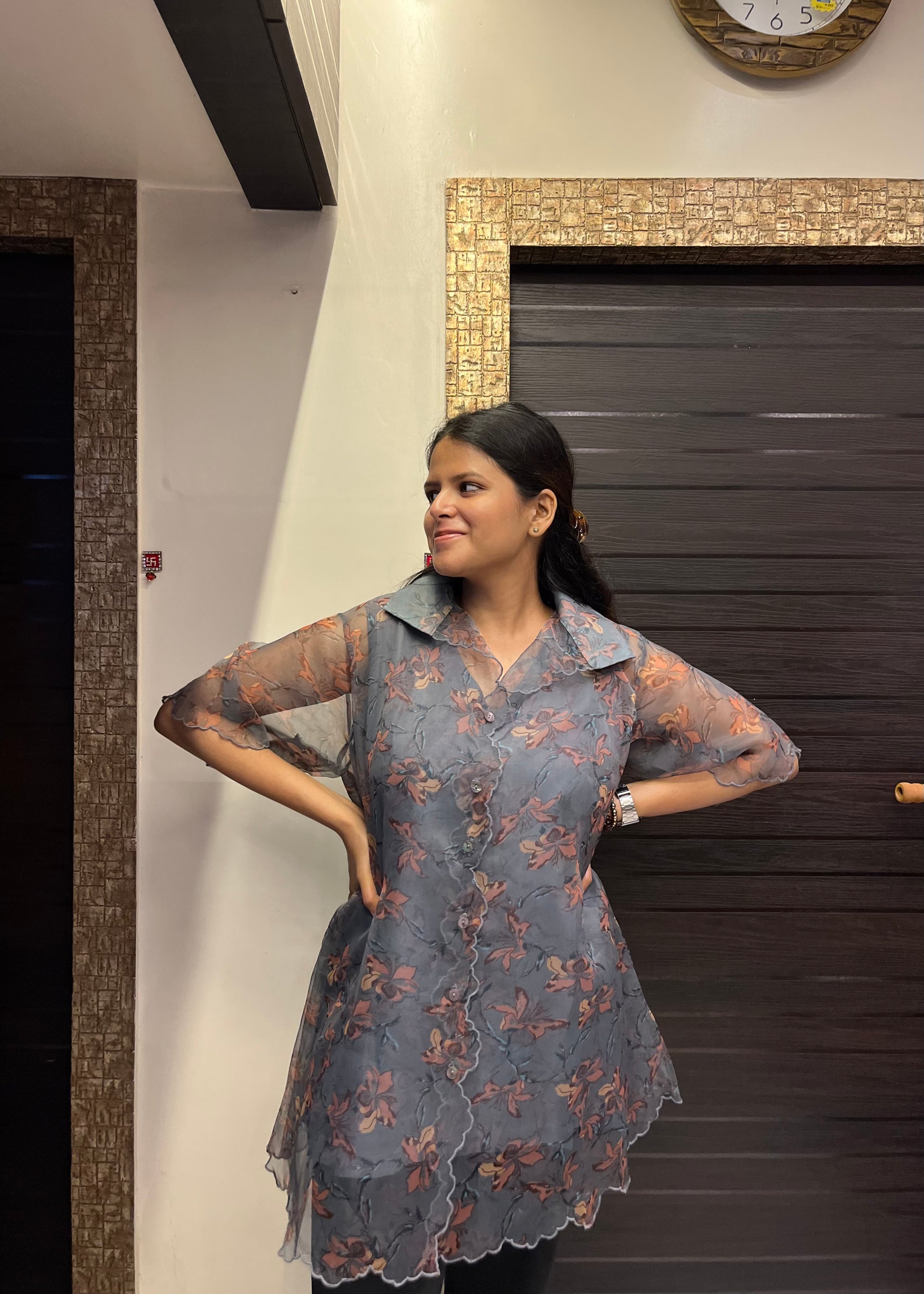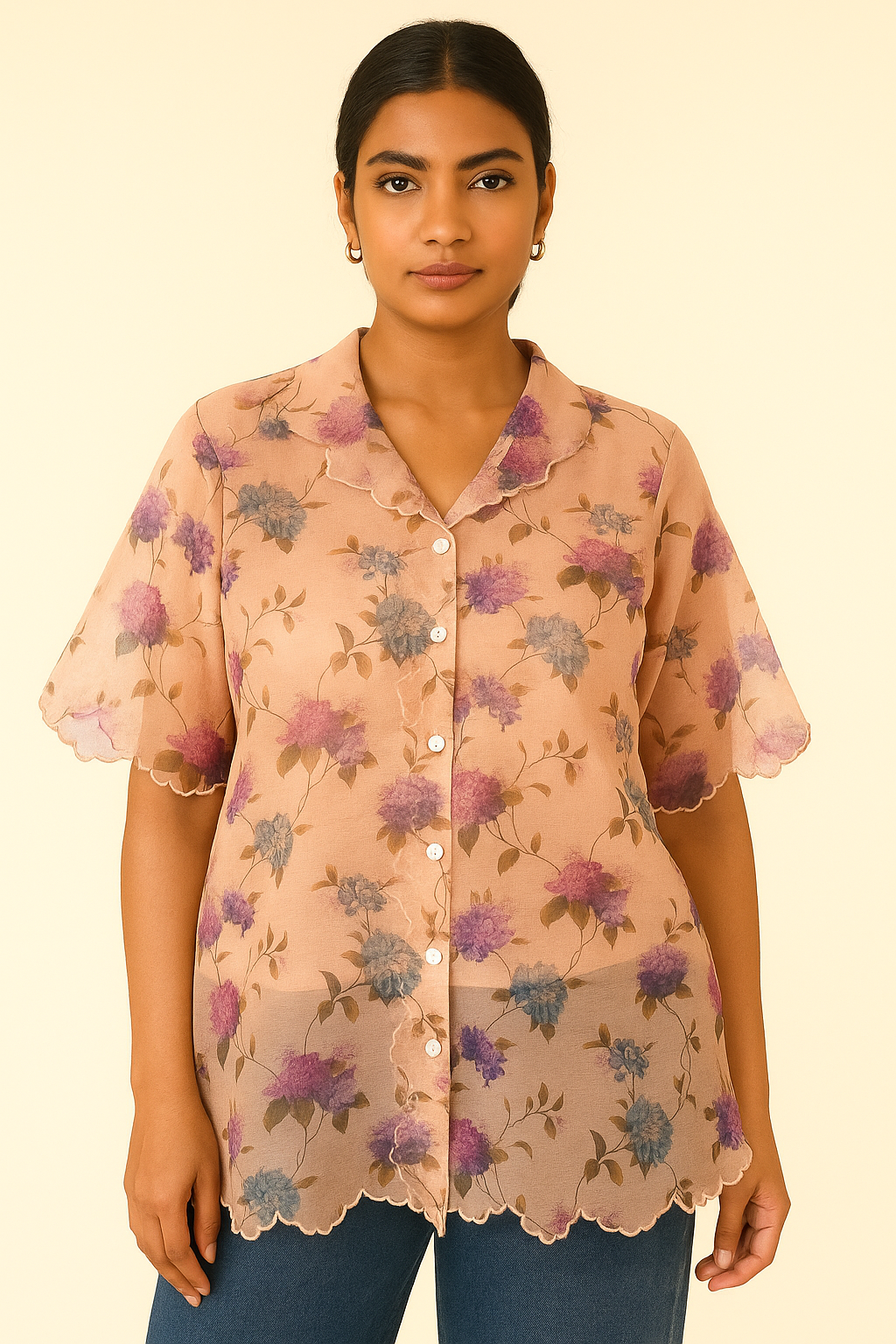 • Made in sheer organza with delicate scallop embroidery along the edges