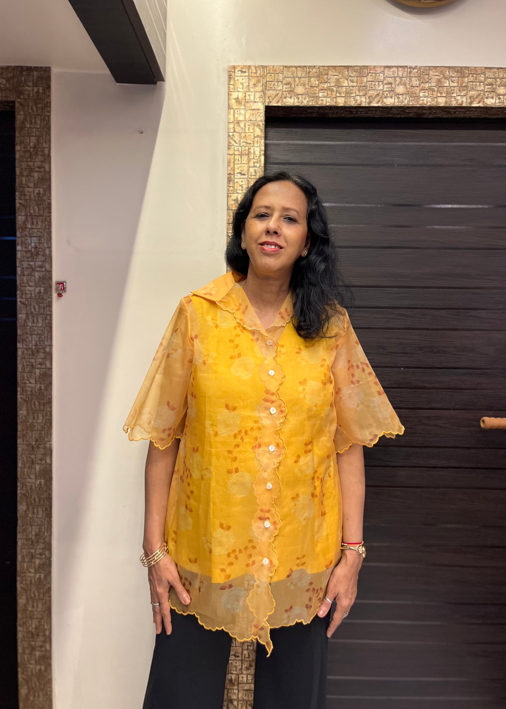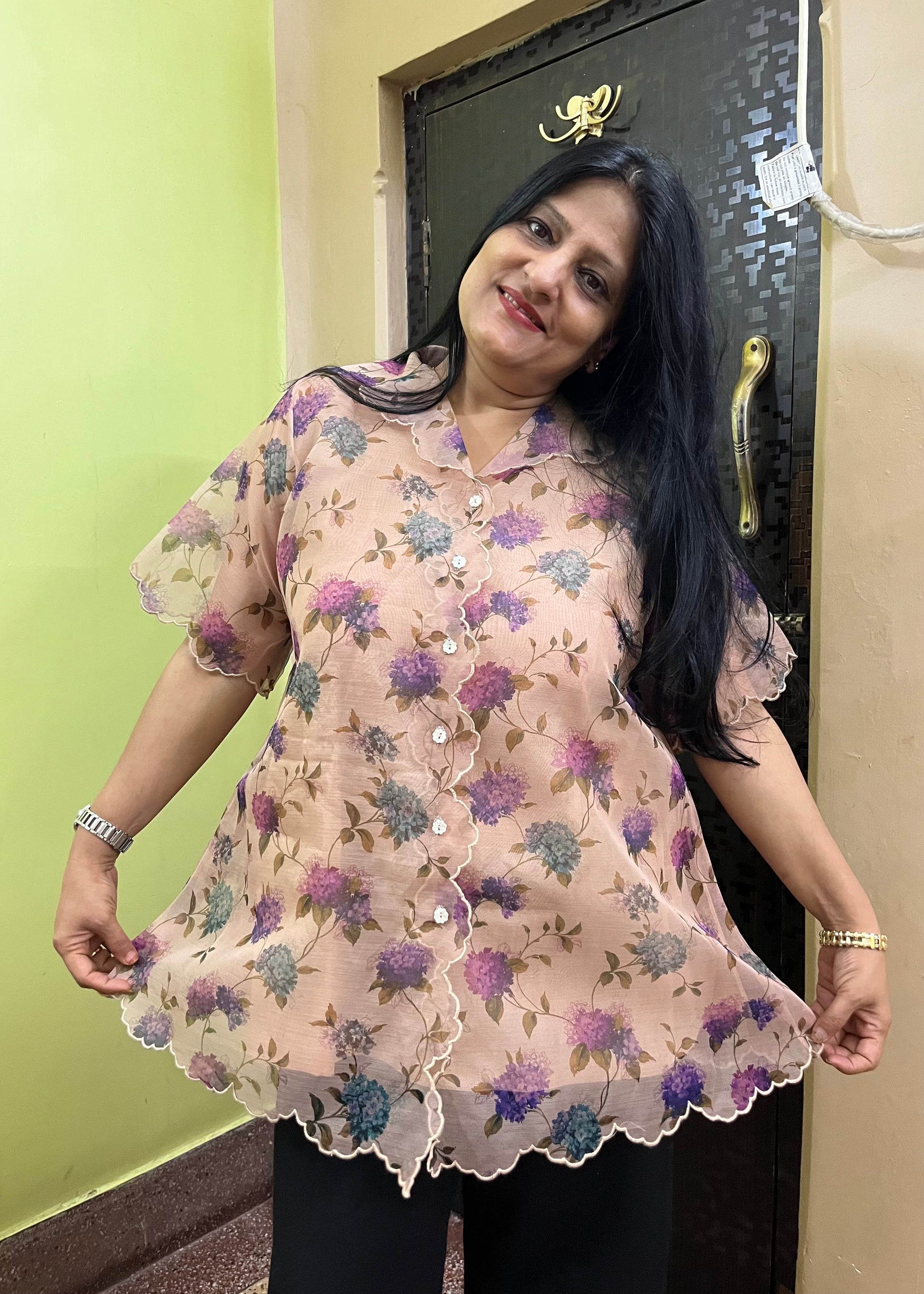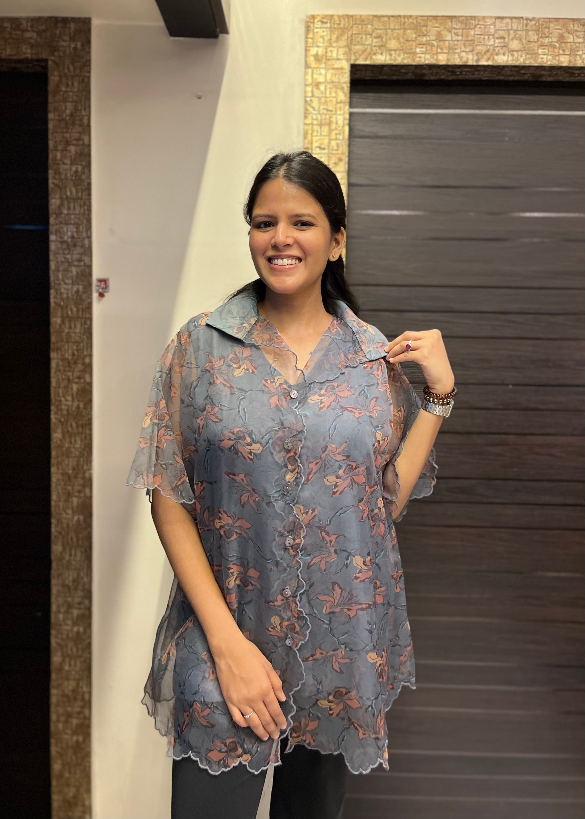 • Made in sheer organza with delicate scallop embroidery along the edges